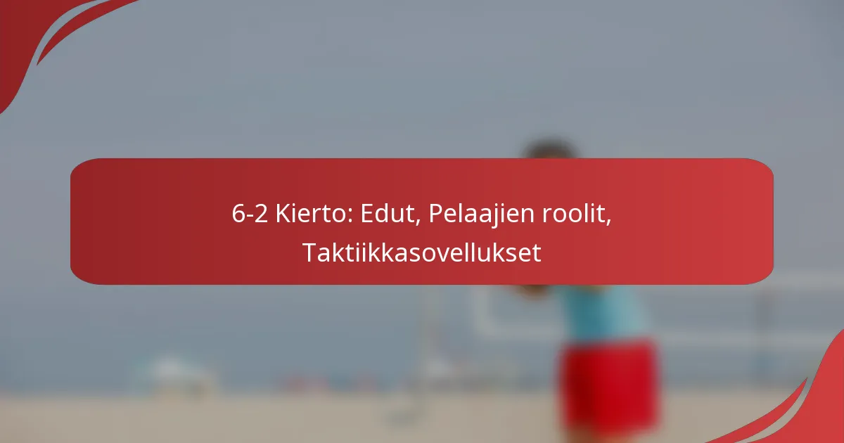 6-2-kierto on lentopallon muodostelma, jossa on kuusi pelaajaa takarivissä ja kaksi verkolla, optimoiden sekä puolustuksen että hyökkäyksen. Tämä strategia mahdollistaa joukkueiden hyödyntää vahvoja hyökkääjiä samalla kun säilytetään vahva puolustusjärjestelmä, mikä tekee siitä erityisen tehokkaan erilaisia vastustajia vastaan.