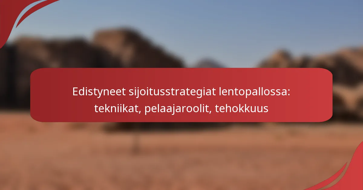 Edistyneet sijoitusstrategiat lentopallossa keskittyvät pelaajien taktiseen järjestelyyn, jotta sekä yksilö- että joukkueperformance paranee. Ymmärtämällä tiettyjä pelaajaroolien merkityksiä ja käyttämällä tehokkaita tekniikoita joukkueet voivat parantaa maalintekopotentiaaliaan ja puolustuksellista vahvuuttaan, mikä lopulta johtaa suurempaan menestykseen kentällä.
