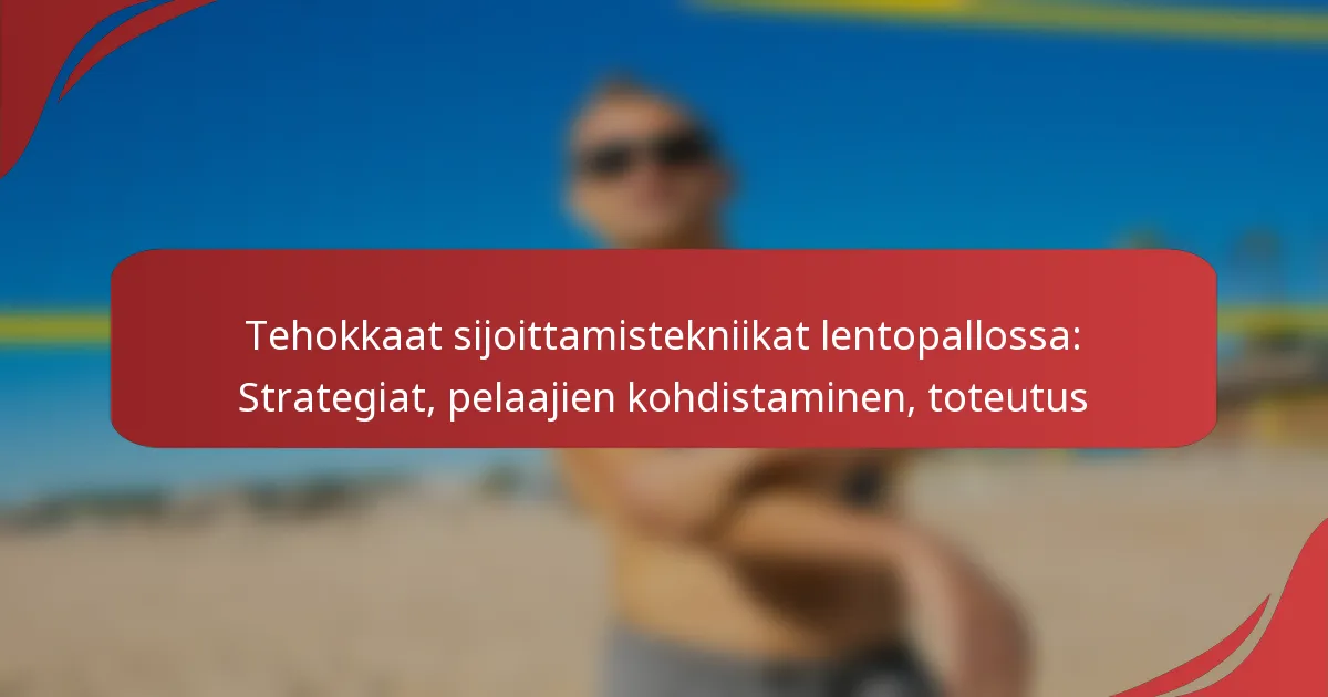 Tehokas sijoittaminen lentopallossa tarkoittaa pelaajien strategista sijoittamista kentällä hyökkäys- ja puolustustaitojen maksimoimiseksi. Keskeisiä strategioita ovat muodostelmien ymmärtäminen, sopeutuminen vastustajiin, pelaajien vahvuuksien hyödyntäminen ja tilanneherkkyyden ylläpitäminen koko ottelun ajan.