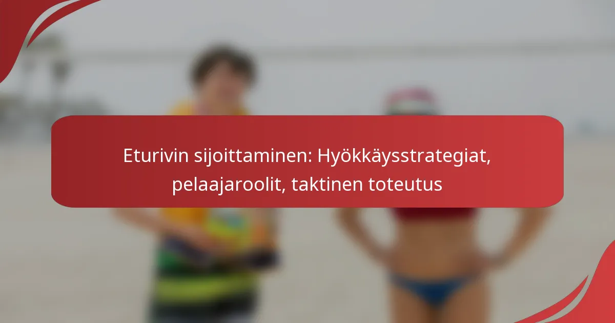Hyökkäysstrategiat, jotka hyödyntävät eturivin sijoittamista, keskittyvät tilan ja maalintekomahdollisuuksien luomiseen. Tämä tarkoittaa eturivin pelaajien käyttämistä puolustajien sitomiseen, mikä mahdollistaa nopean pallon liikuttamisen ja taktiset pelit. Sijoittuminen voi vaihdella joukkueen kokonaispelisuunnitelman ja mukana olevien pelaajien erityisten vahvuuksien mukaan.