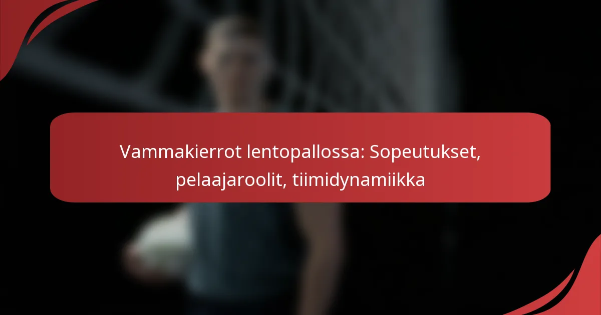 Vammakierrot lentopallossa tarkoittavat strategisia säätöjä, joilla sopeutetaan loukkaantuneita pelaajia, mikä mahdollistaa joukkueiden kilpailukyvyn säilyttämisen otteluiden aikana. Nämä kierrot vaikuttavat merkittävästi joukkueen dynamiikkaan ja pelaajien rooleihin, ja ne vaativat tehokasta viestintää ja sopeutumiskykyä, jotta suorituskyky pysyy korkealla huolimatta tärkeiden pelaajien poissaoloista.