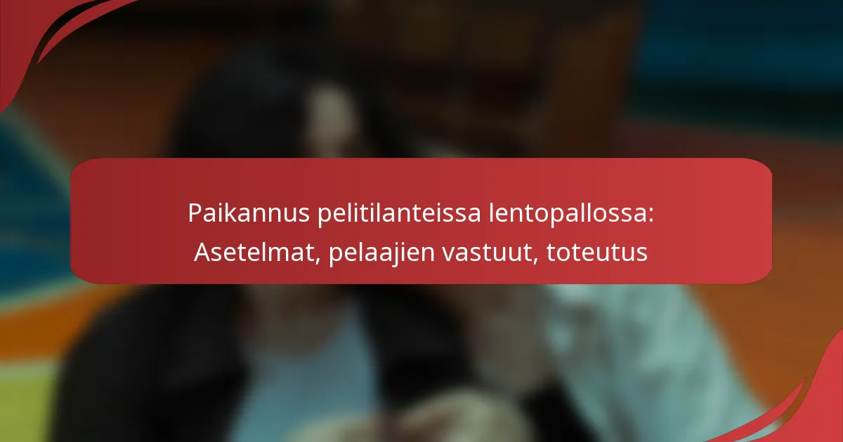 Pelipaikoilla lentopallossa jokaisella pelaajalla on erityiset vastuut, jotka vaikuttavat pelin kokonaismenestykseen. Näiden roolien ymmärtäminen varmistaa tehokkaan toteutuksen ja parantaa joukkueen suoritusta.