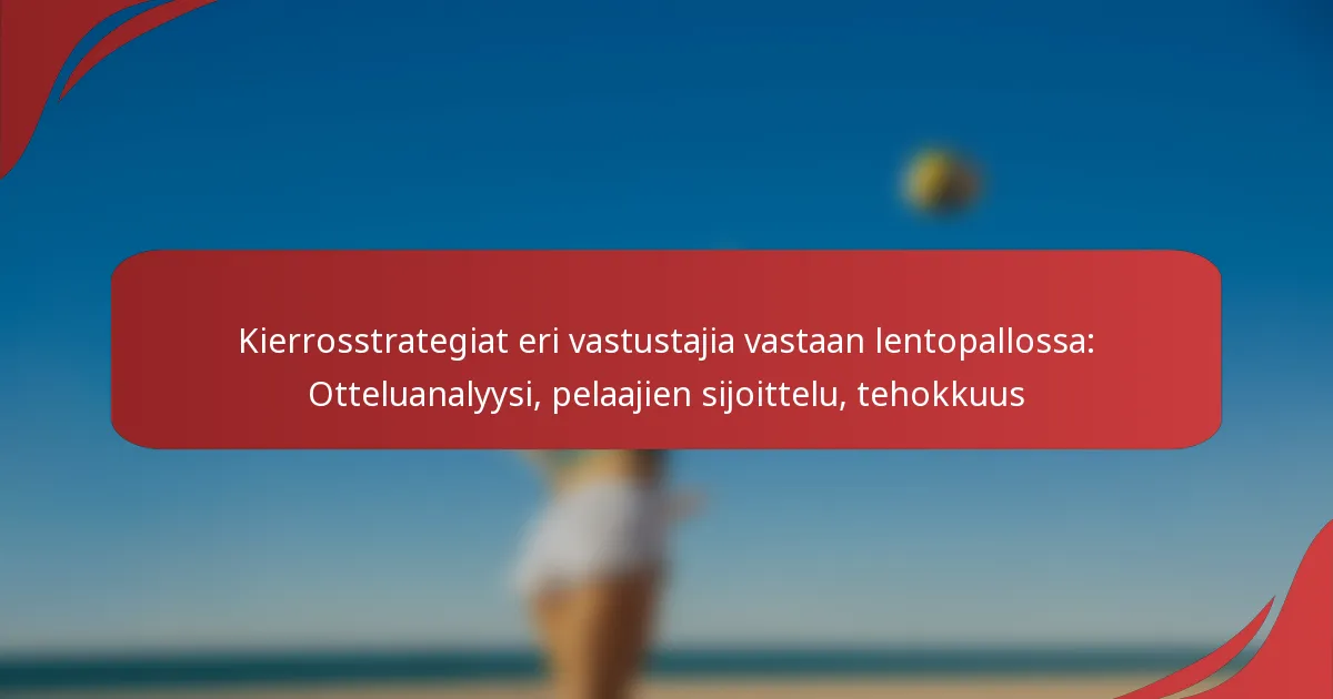 Avainkiertostrategiat volleyssä sisältävät järjestelmälliset pelaajien liikkeet, jotka parantavat joukkueen suorituskykyä eri vastustajia vastaan. Nämä strategiat pyrkivät optimoimaan pelaajien sijoittumisen, hyödyntämään vahvuuksia ja hyökkäämään vastustajien heikkouksia vastaan otteluissa.