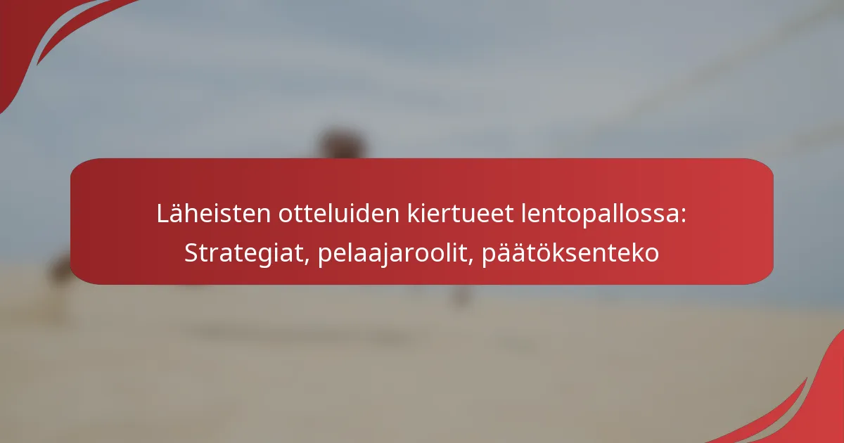 Tiukoissa lentopallotteluissa tehokkaat kiertostrategiat ovat olennaisia joukkueen vahvuuksien maksimoimiseksi ja heikkouksien minimoimiseksi. Jokaisella pelaajalla on tietty rooli, joka vaikuttaa sekä hyökkäys- että puolustustaktiikoihin, joten on tärkeää, että joukkueet ymmärtävät nämä dynamiikat. Strateginen päätöksenteko, jota ohjaavat reaaliaikaiset havainnot ja pelaajien suorituskyky, mahdollistaa valmentajien ja pelaajien sopeuttaa kiertojaan ja parantaa voittomahdollisuuksiaan.