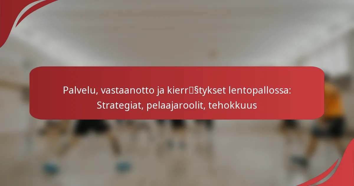 Tehokkaat syöttövastaanottokierrot lentopallossa perustuvat strategiseen sijoittumiseen, selkeään viestintään ja sopeutumiskykyyn vastustajiin. Toteuttamalla erityisiä tekniikoita joukkueet voivat parantaa vastaanottoaan ja luoda onnistuneita pelitilanteita, mikä lopulta parantaa yleistä suorituskykyä.