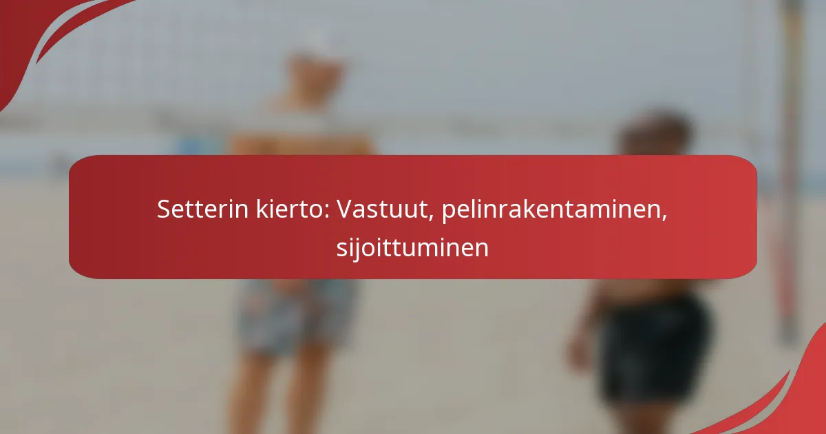 Setterin ensisijaiset vastuut sisältävät hyökkäyspelien helpottamisen, tarkkojen syöttöjen toteuttamisen ja tehokkaan viestinnän ylläpitämisen joukkuekavereiden kanssa. Setterillä on ratkaiseva rooli pelin kulun määrittämisessä tekemällä nopeita päätöksiä kenttätilanteen ja vastustajan puolustuksen perusteella.